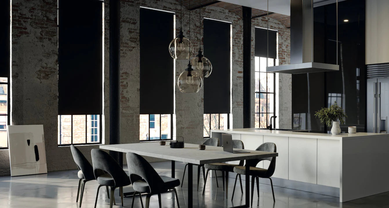 Grey roller blinds work in a range of environments. From a modern and sophisticated kitchen, to a calming and subdued relaxation space. They also complement a professional and formal setting such as a home office.